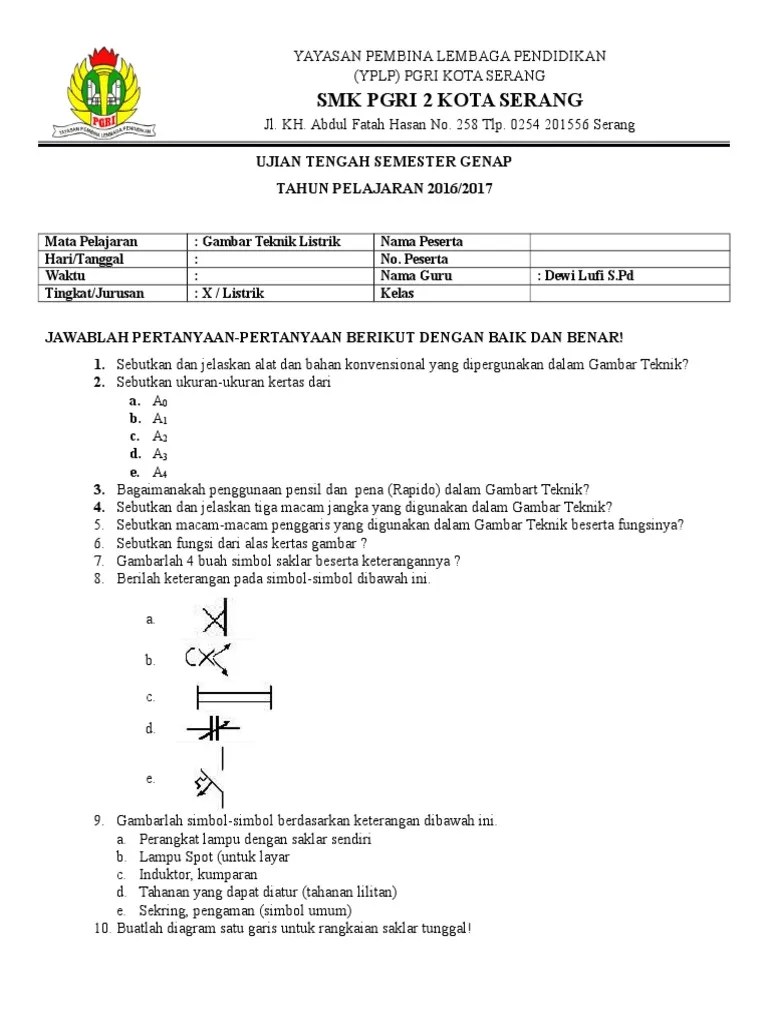Soal berupa 40 pilihan ganda dan 5 soal uraian atau esai. Pada kesempatan kali ini admin telah membagikan latihan soal pekerjaan dasar otomotif semester 2 kurikulum 2013. Contoh soal gambar teknik semester genap / soal ujian gambar teknik : Teknik otomotif kelas 10 semester ganjil dan semester genap. Contoh soal uas gambar teknik smk kelas x semester 2 april 28, 2017contoh soal ukk smk tentang gambar teknik.